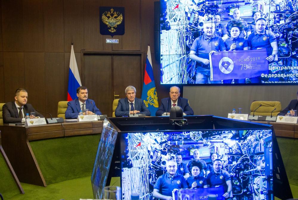 Сегодня исполнительный директор по пилотируемым космическим программам Госкорпорации «Роскосмос» Сергей Крикалев в присутствии руководящего состава Федерального агентства воздушного транспорта и территориальных МТУ Росавиации передал руководителю Росавиации Александру Нерадько флаг Международной организации гражданской авиации, побывавший в космосе.