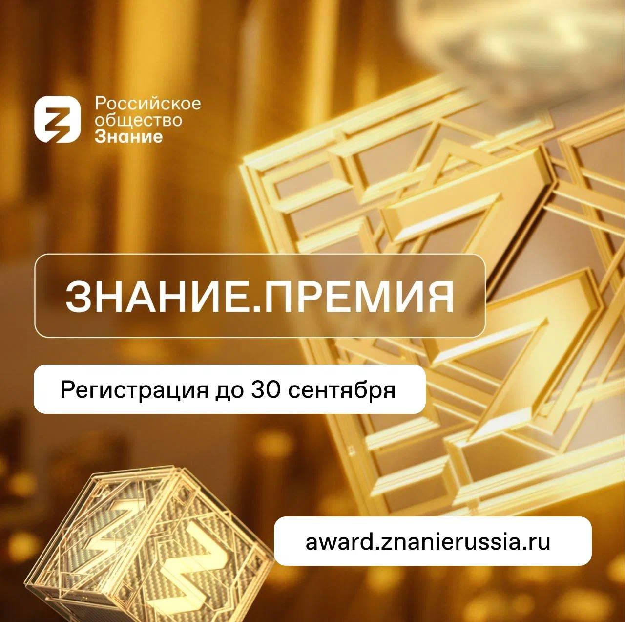 Заявку и информацию о просветительской деятельности необходимо подать до 30 сентября 2024 года. Подать заявку на участие — award.znanierussia.ru