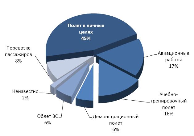 Распределение авиационных происшествий с воздушными судами АОН за период с 2006 по 2015 годы по назначению полетов приведено на рисунке 1.3.