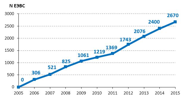Рис. 4.1. Число ЕЭВС, зарегистрированных в Государственном реестре