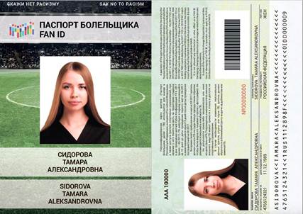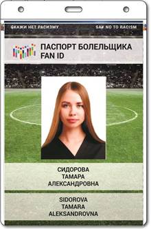1. Tarjeta Personificada de Espectador/Pasaporte de Aficionado/FAN ID en soporte papel laminado.Impreso con protección, teniendo en cuenta los requerimientos de seguridad de la Federación Rusa.