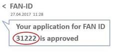 After that, the FAN ID application will be re-registered, and the applicant will be notifiedabout it with an electronic notice sent to the specified phone number and email address.