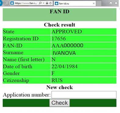 - register on the websitewww.fan-id.ru* and undergo the data check in the FIS again, using thecorrect data. In case of approval, the passenger will receive a notice of the approval: