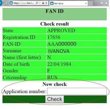 The developed Application allows checking whether a foreign citizen is registered in the FIS ornot and confirms the permission/refusal of the Russian Federation’s authorities for the FAN IDholder to enter Russia.