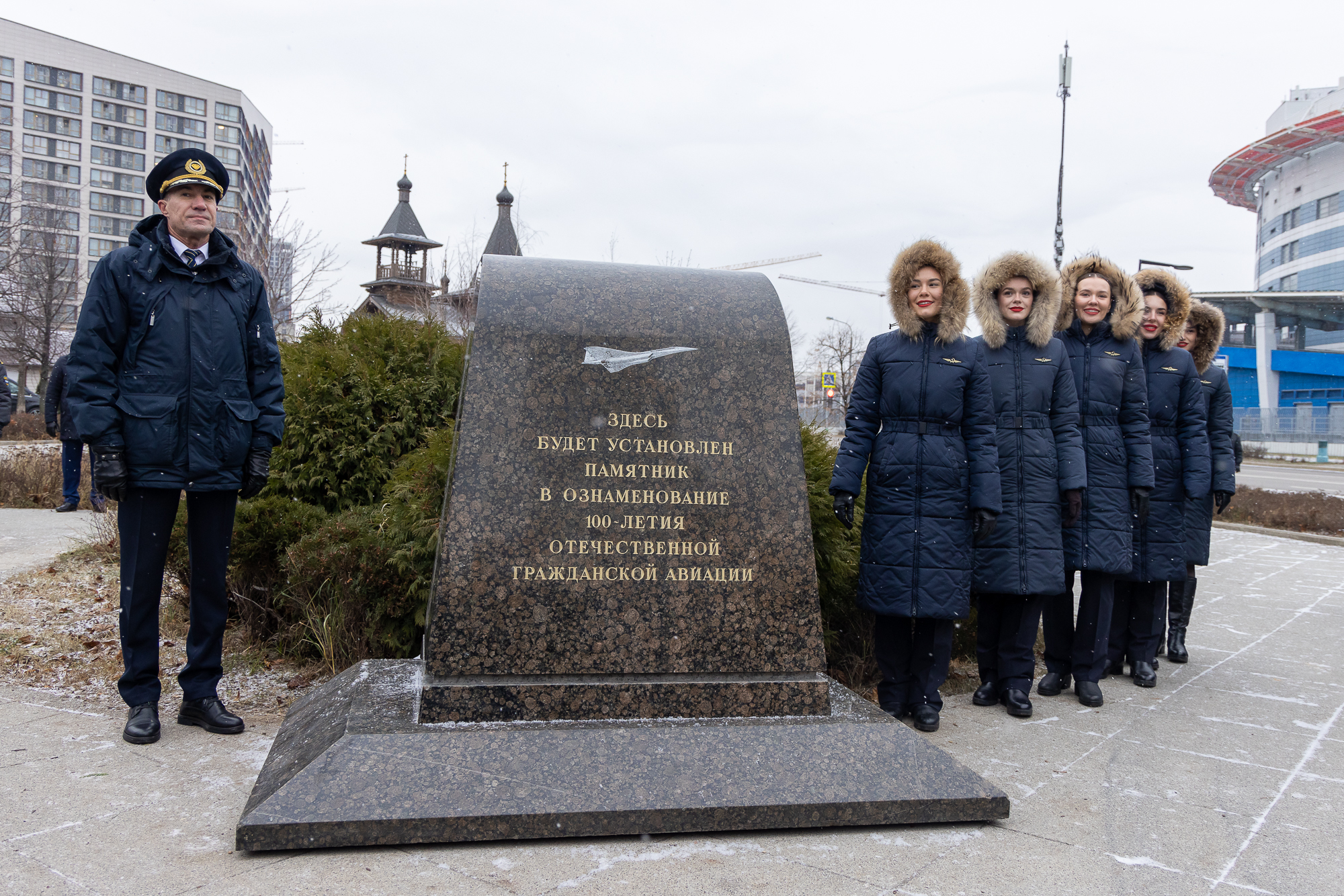 Торжественная церемония закладки камня на месте возведения будущего памятника авиаторам, посвященного 100-летию отечественной гражданской авиации, состоялась на Ходынском поле 20 ноября в День работника транспорта.