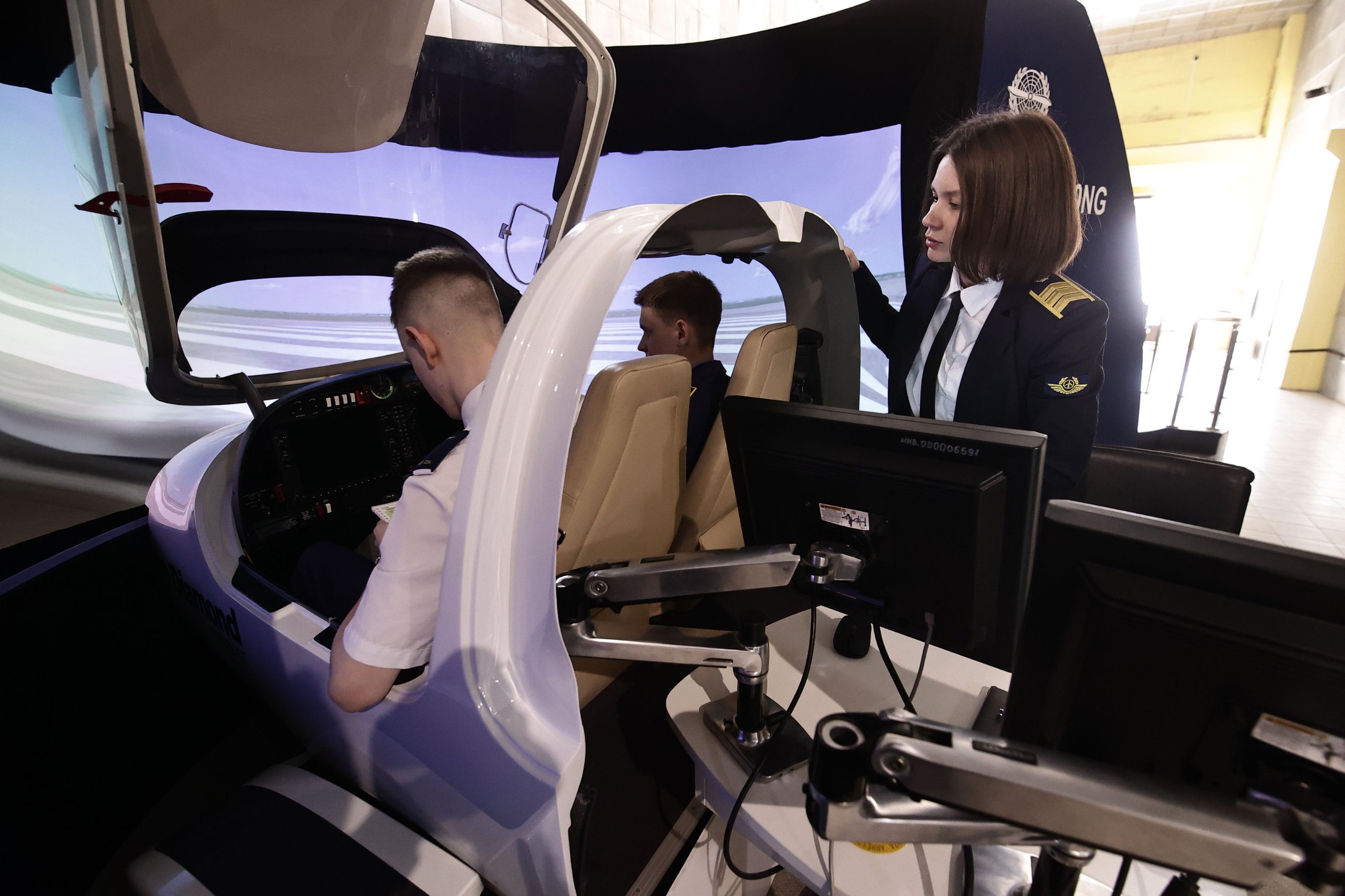 УИ ГА оснащен полнопилотажными тренажерами нескольких типов самолетов, в том числе Boeing 737. Занятие с курсантами проводит пилот-инструктор самолетов первоначальной подготовки Ксения Арисова
