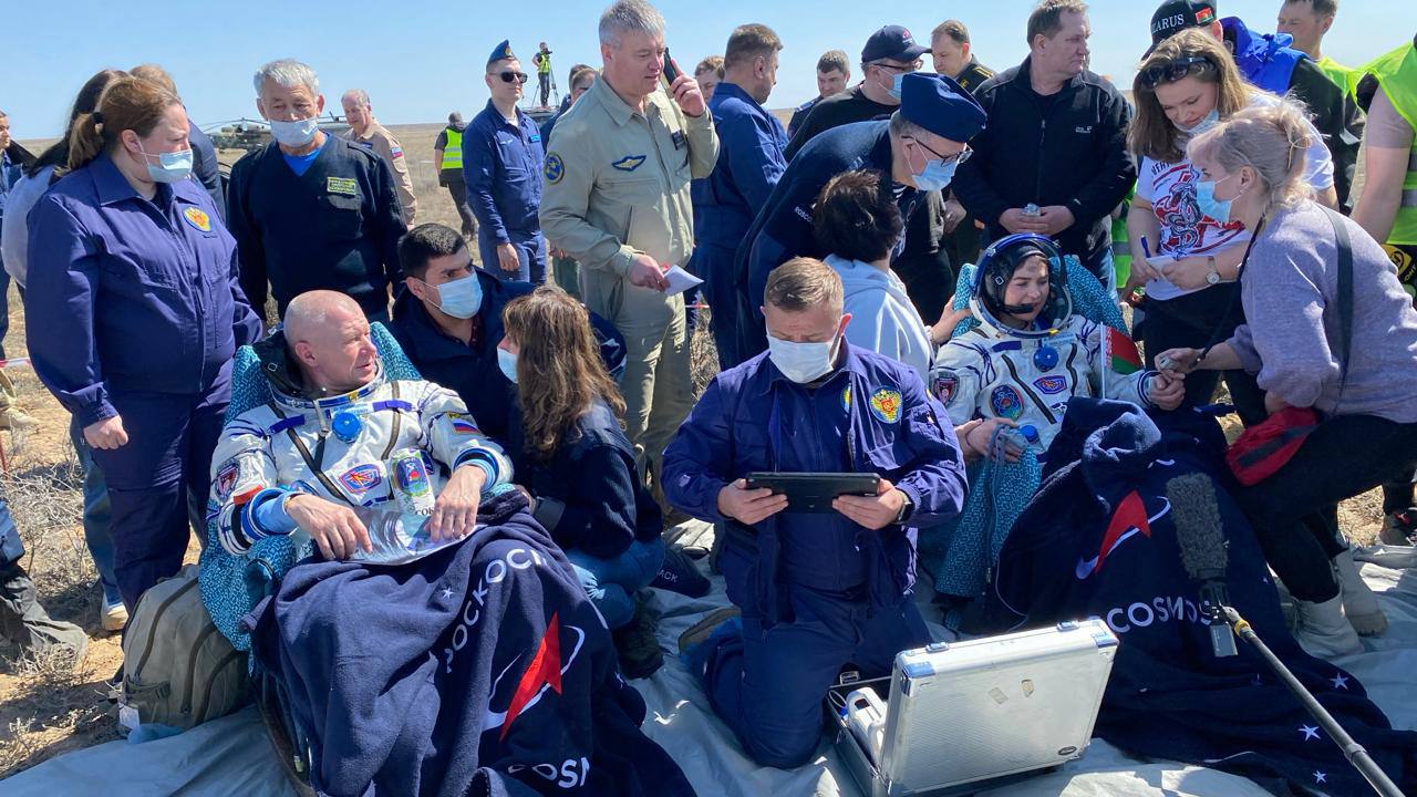 Встреча экипажа корабля "Союз МС-24" после приземления