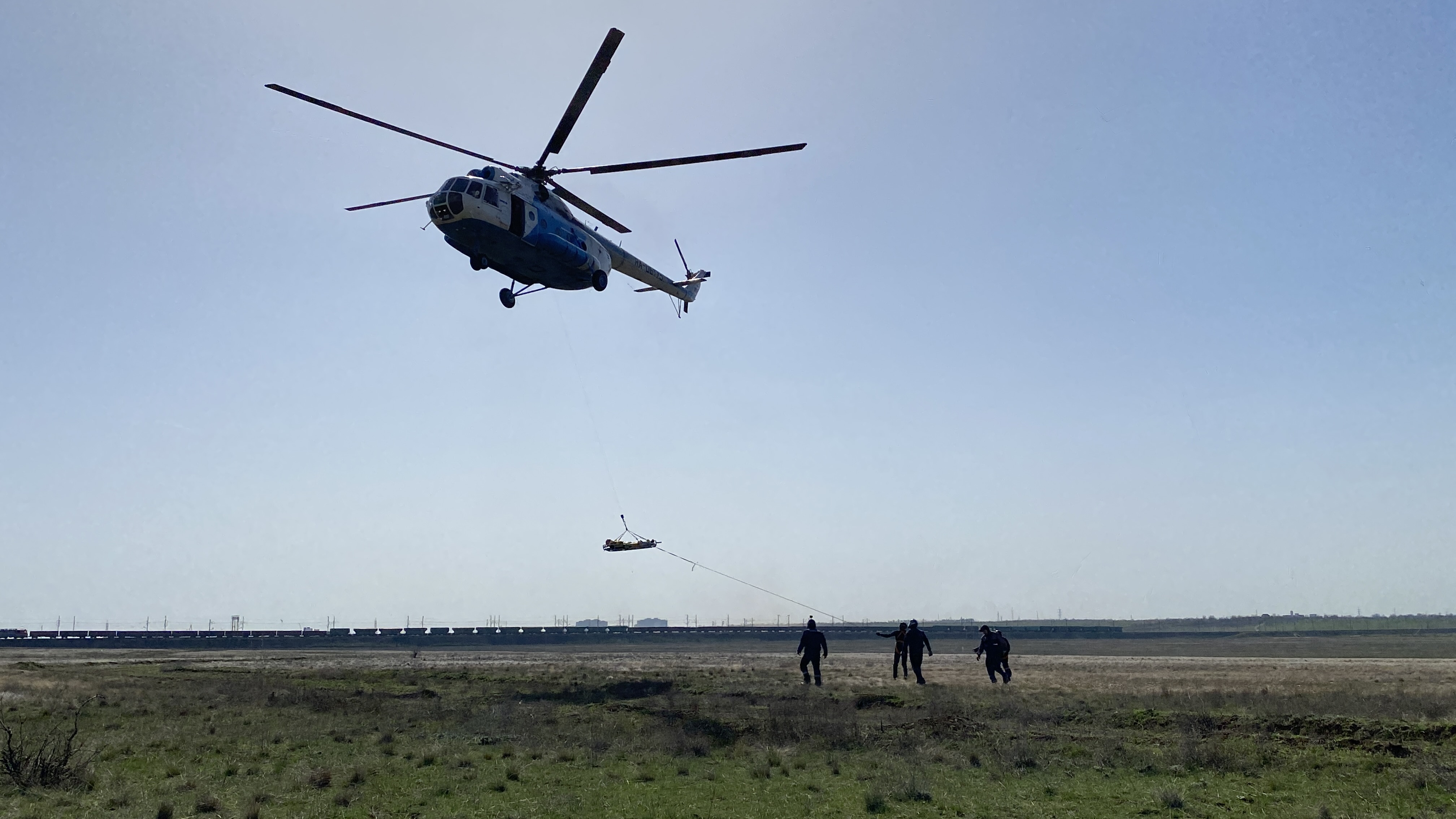 Эвакуация пострадавшего на борт вертолета осуществлялась в режиме висения при помощи носилок и лебедки