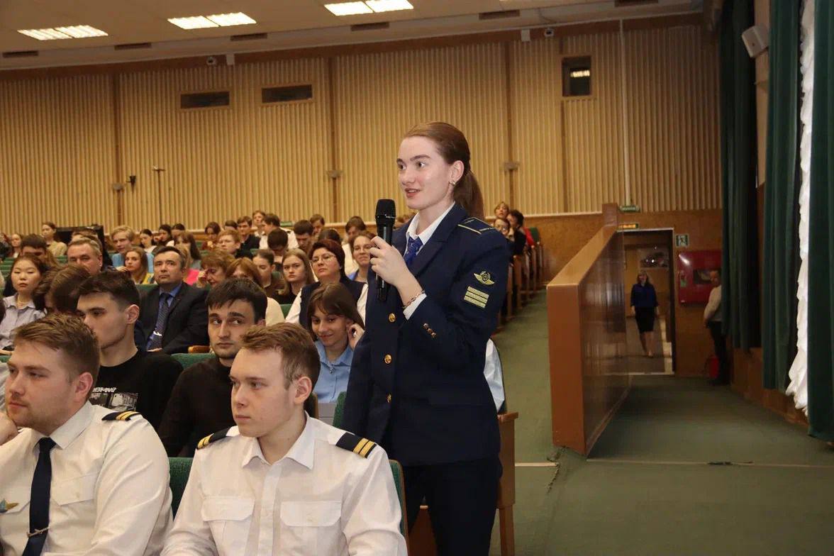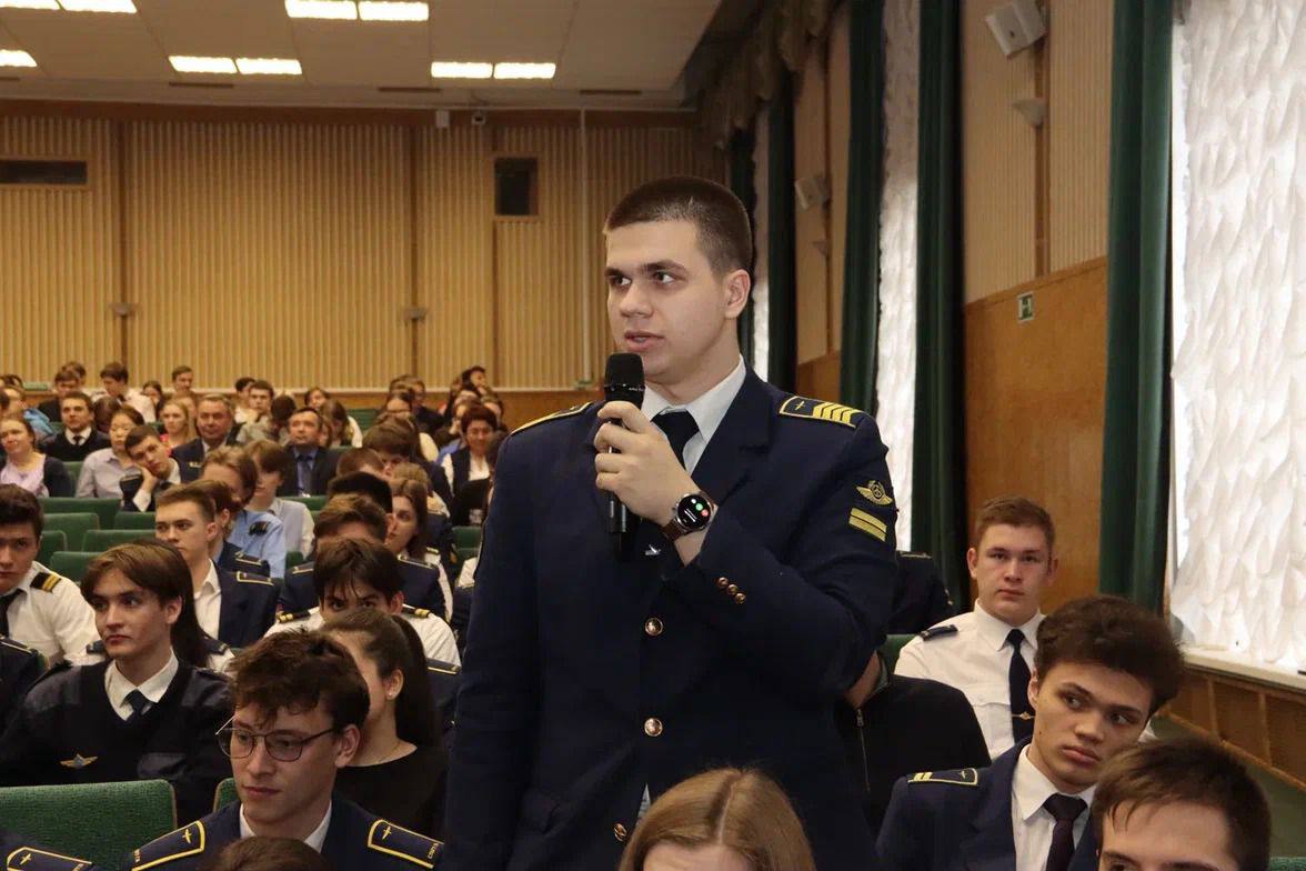 В разговоре со студентами Дмитрий Ядров отметил значимость профессиональной подготовки для летного персонала