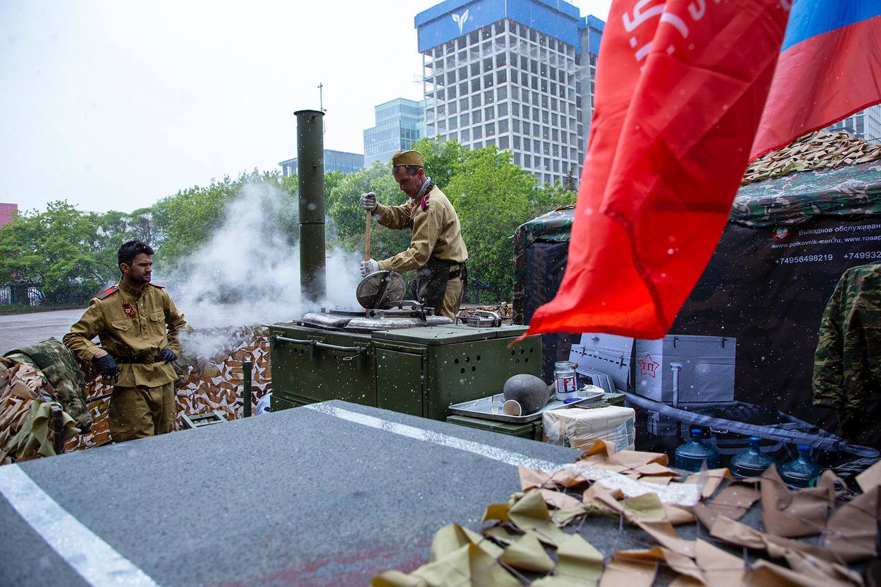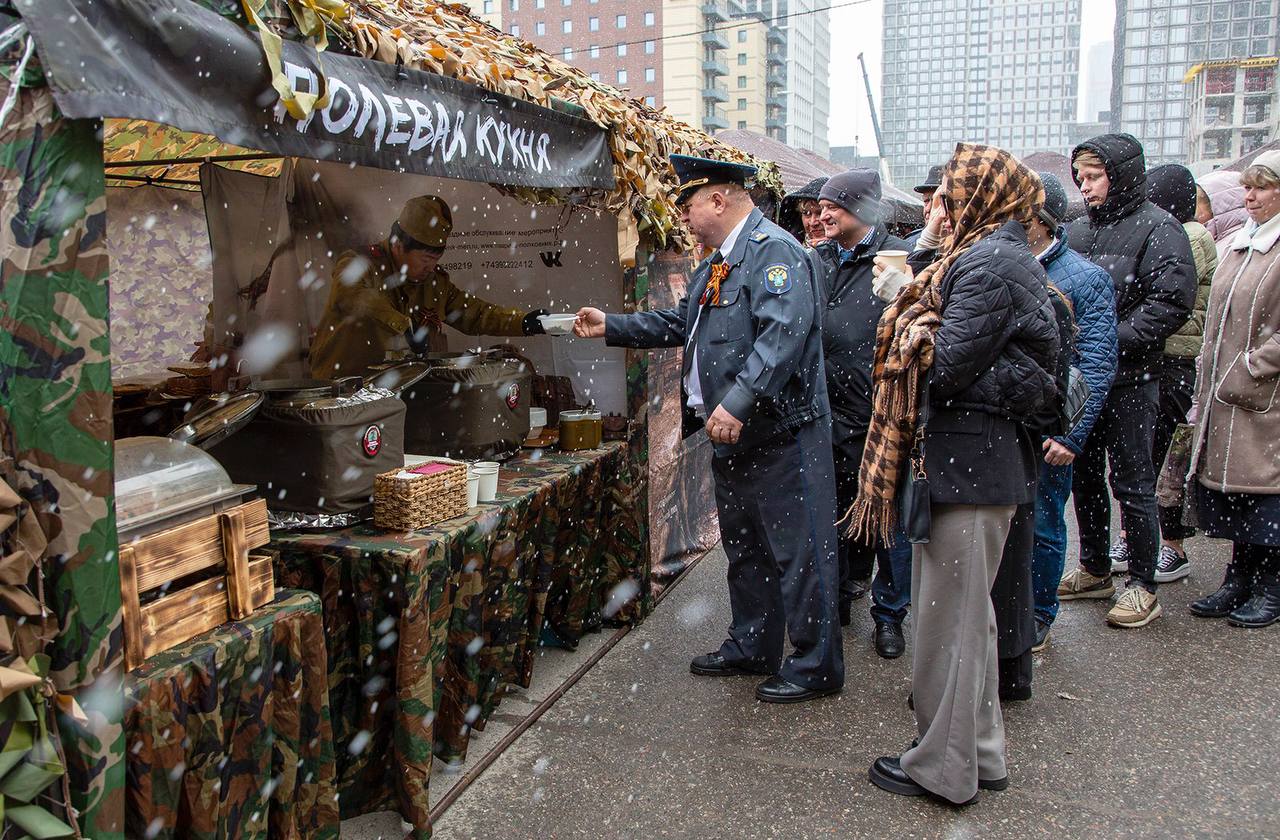 В завершении праздника ветеранов угостили на полевой кухне, которая была специально развернута в этот день возле здания Росавиации.