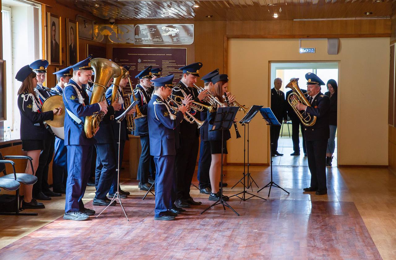 • ветеранов встречал духовой оркестр, курсанты Егорьевского авиационного технического колледжа им. В.П.Чкалова исполняли песни военных лет;