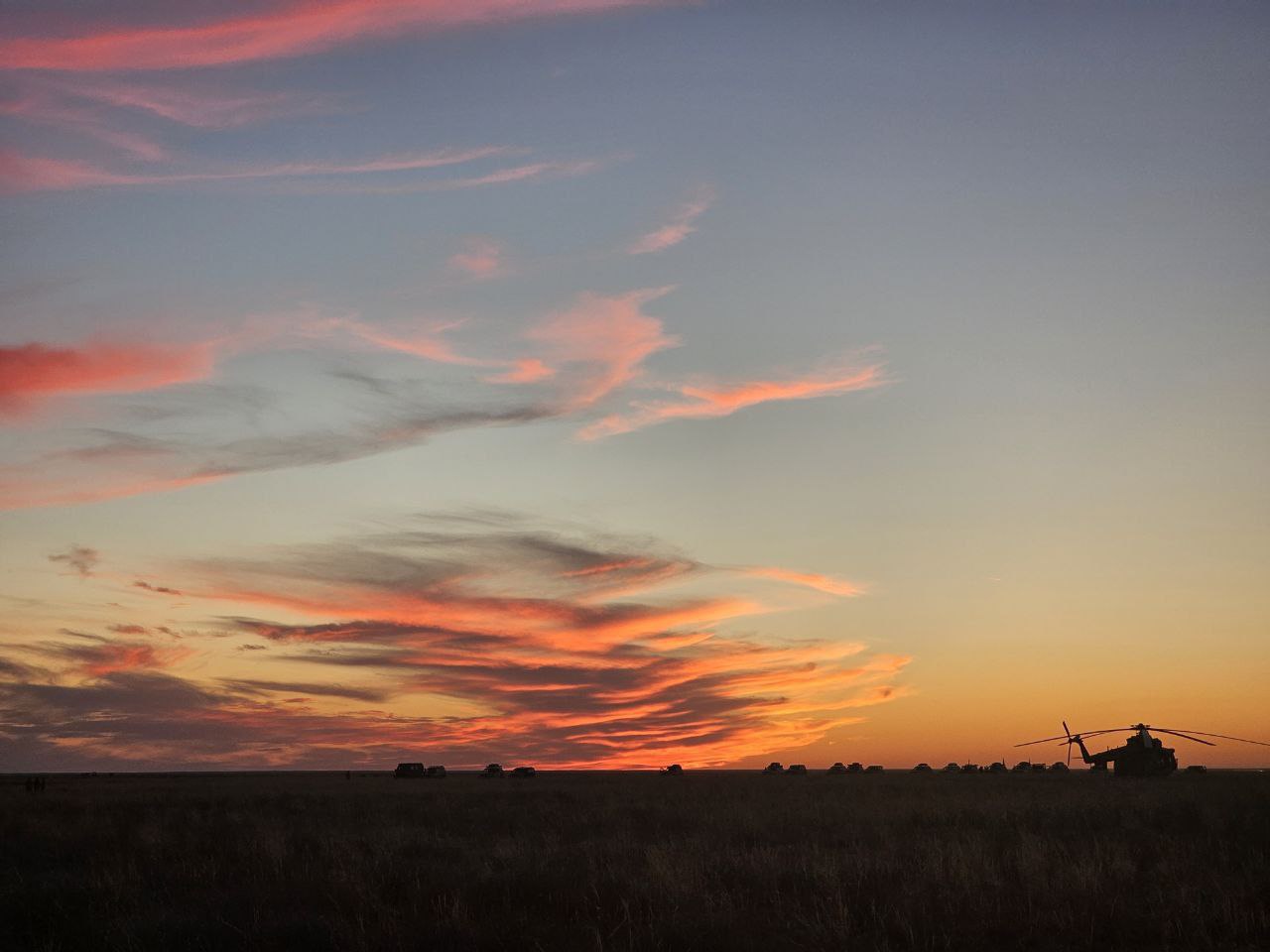 Экипаж космического корабля вертолетами доставили в аэропорт Караганды, где их ждали самолеты «Роскосмоса» и NASA.