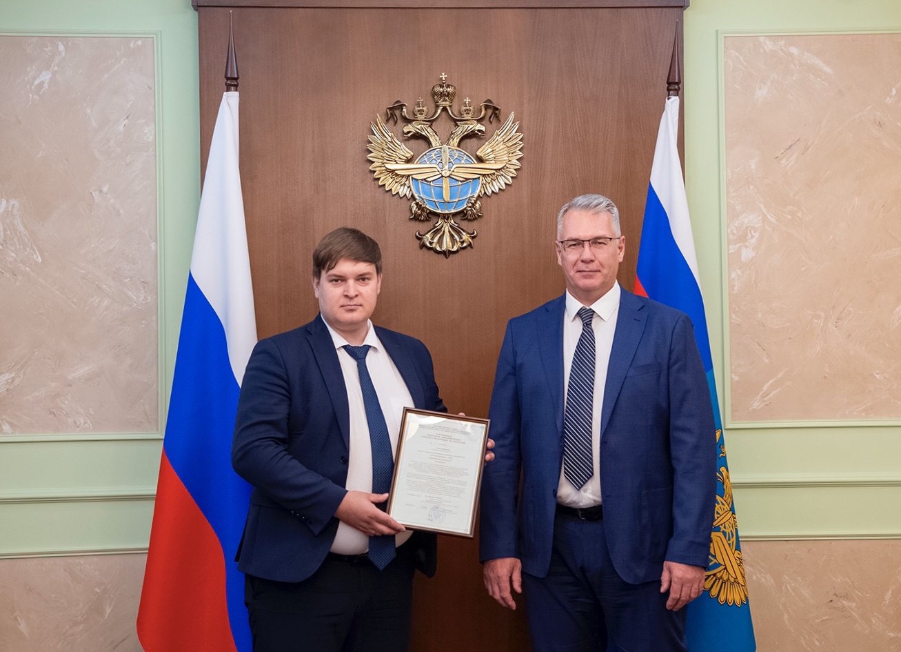 Заместитель начальника Управления аэропортовой деятельности Росавиации Николай Мищенко (слева) и генеральный директор «Газпромнефть-Аэро Шереметьево» Алексей Пчелинцев (справа).