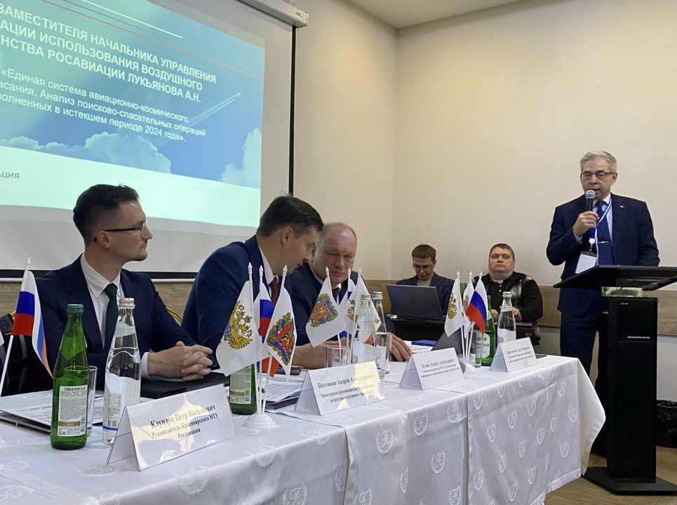С докладом о деятельности Единой системы авиационно-космического поиска и спасания выступил Алексей Лукьянов, заместитель начальника управления организации использования воздушного пространства Росавиации.