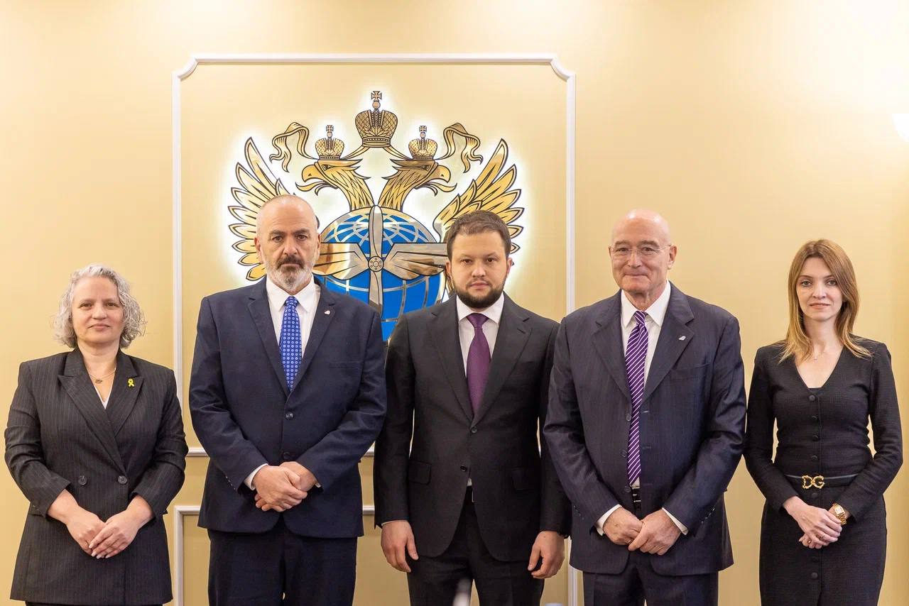 Руководитель Росавиации (в центре) Дмитрий Ядров и Чрезвычайный и Полномочный посол Государства Израиль Симона Гальперин (слева) обсудили в агентстве расширение сотрудничества в авиационной сфере между странами