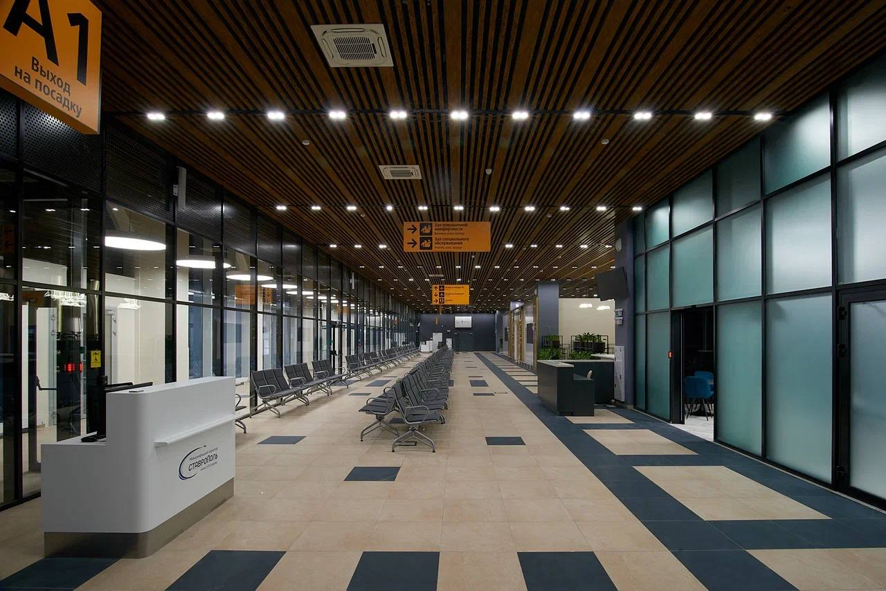 Зал ожидания в новом терминале воздушной гавани Ставрополя