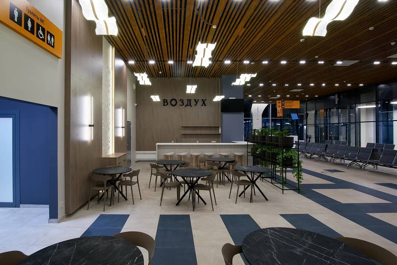 В интерьере терминала нашли отражение мотивы природы региона, еще одним украшением здания является макет гитары советского поэта, автора и исполнителя песен Владимира Высоцкого.
