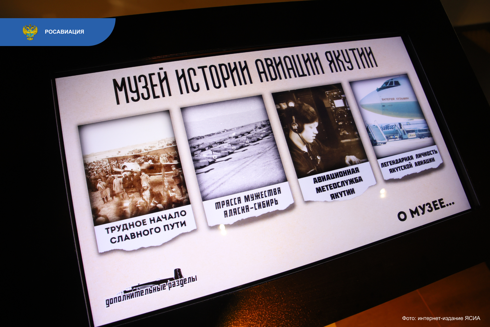 Далее в Центре культуры и современного искусства имени Ю.А. Гагарина состоялась презентация мультимедийной научно-культурной выставки «Авиация Якутии – достояние республики». Экспозиция наглядно продемонстрировала богатую историю, героические страницы и современные достижения авиационной отрасли региона.