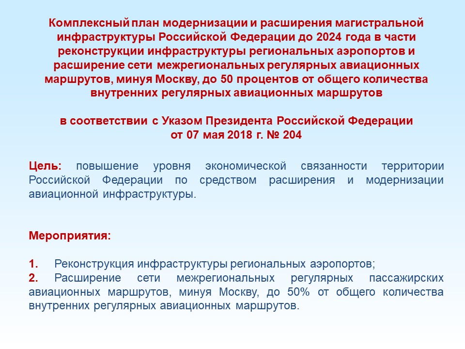«О реконструкции инфраструктуры региональных аэропортов и расширении сети межрегиональных пассажирских авиационных маршрутов в Российской Федерации»