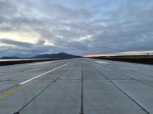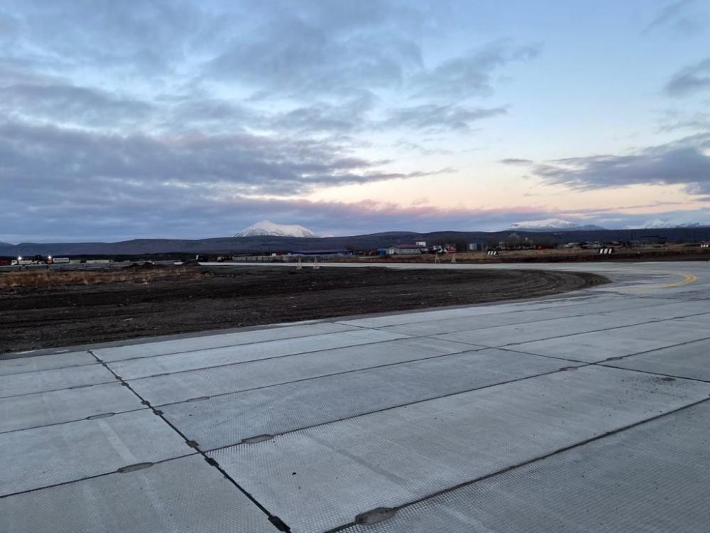 Первый этап реконструкции взлетно-посадочной полосы включал монтаж и укладку плит взлетно-посадочной полосы, устройство укрепленных отмосток вдоль взлетно-посадочной полосы, устройство торцевых участков и герметизацию швов.