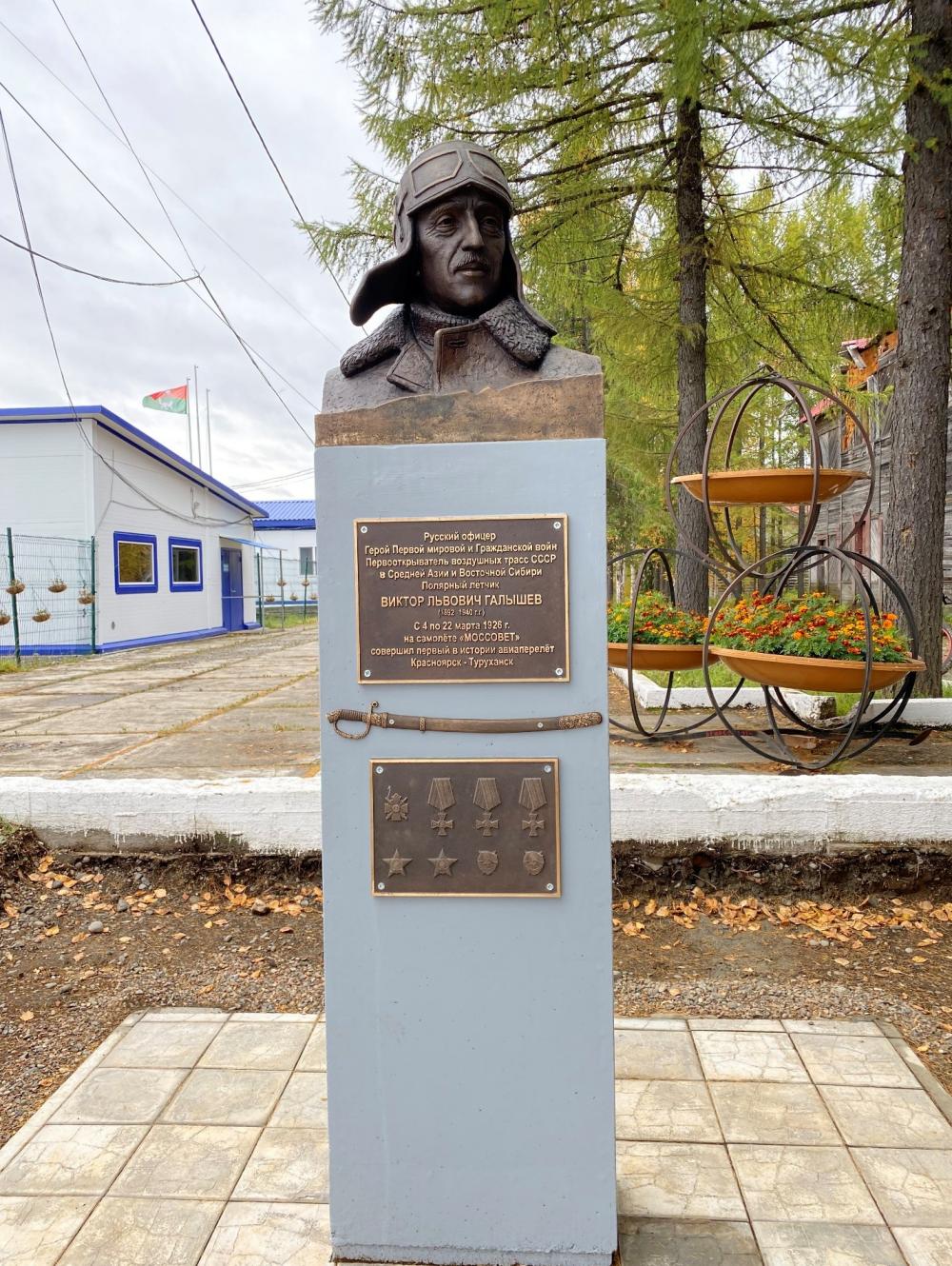 В с. Туруханск Красноярского края 15 сентября 2021 года состоялось торжественное мероприятие по случаю празднования 95-летней годовщины со дня открытия воздушной трассы на Крайний север. В селе установили памятник полярному летчику, открывшему воздушную трассу на Крайний север и посадившему первый самолет Виктору Львовичу Галышеву.