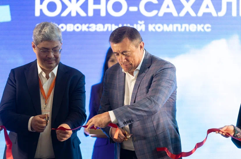 В операционном зале нового аэровокзального комплекса губернатор Сахалинской области Валерий Лимаренко и председатель совета директоров АО «Восточные Ворота Страны» Алексей Васильченко торжественно перерезали ленту в честь значимого для региона события.