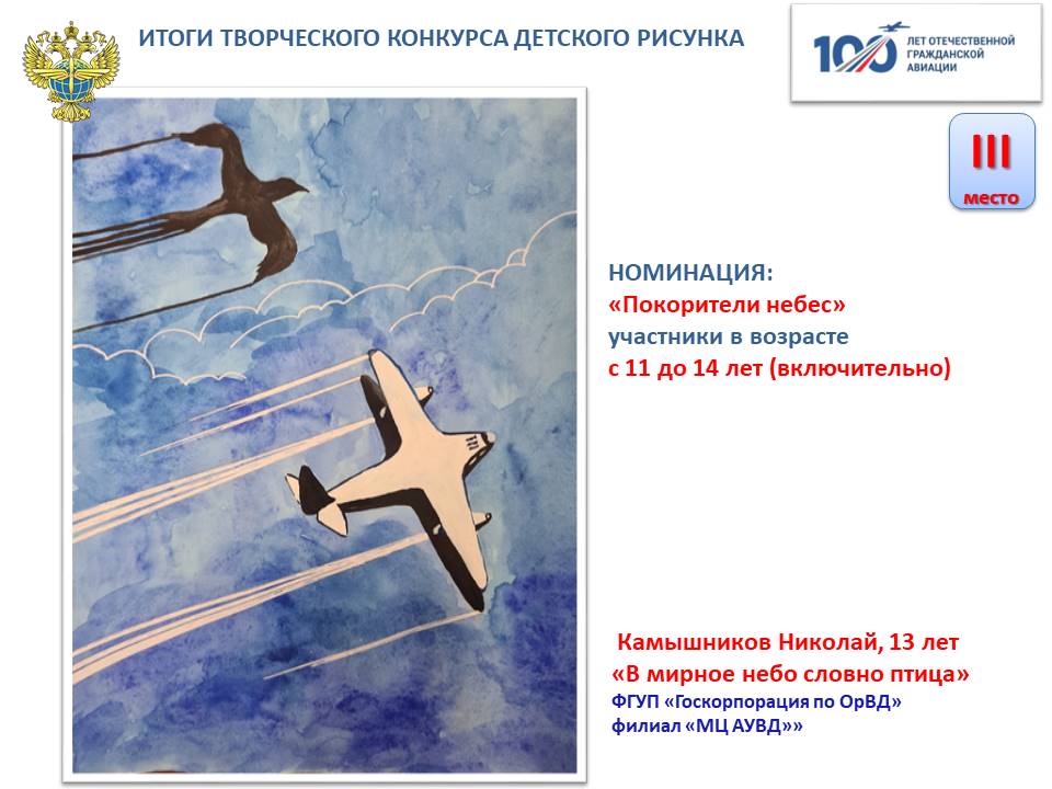 Федеральным агентством воздушного транспорта в рамках 100-летия со дня создания отечественной гражданской авиации проведен конкурс детского рисунка.