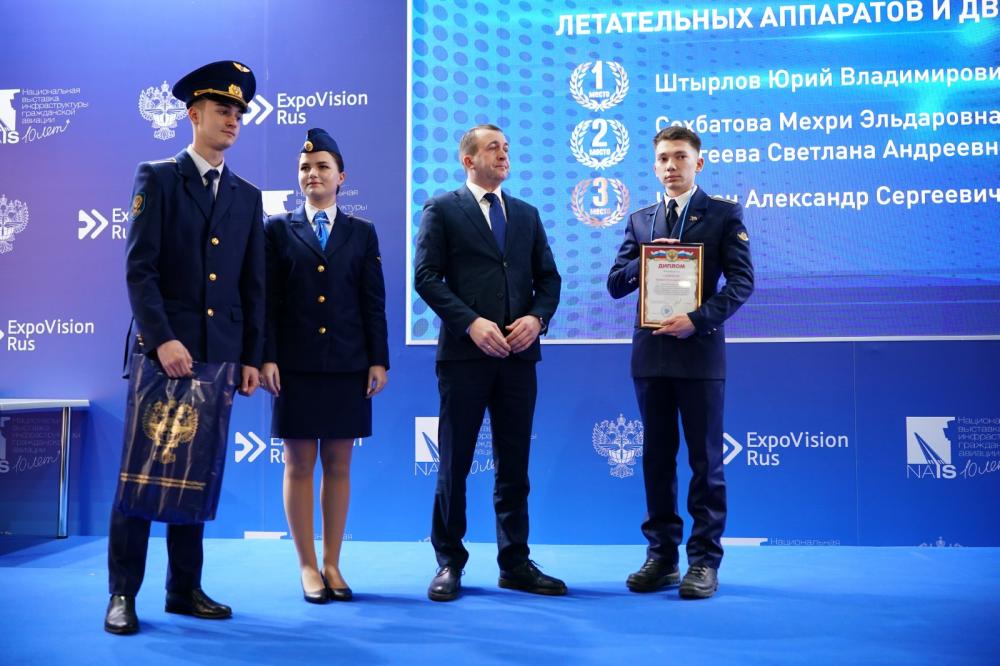 Первый день выставки завершился награждением победителей Конкурса научно-исследовательских работ студентов и молодых ученых учебных заведений гражданской авиации.